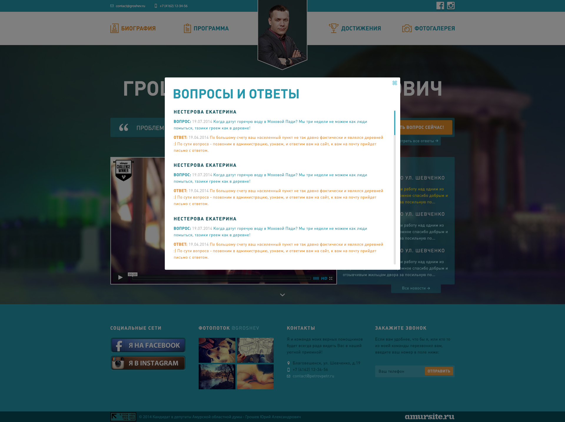 Предвыборный сайт кандидата в депутаты Грошева Юрия Александровича от партии "Единая Россия" P.S. Кандидат стал депутатом на выборах данного созыва.
